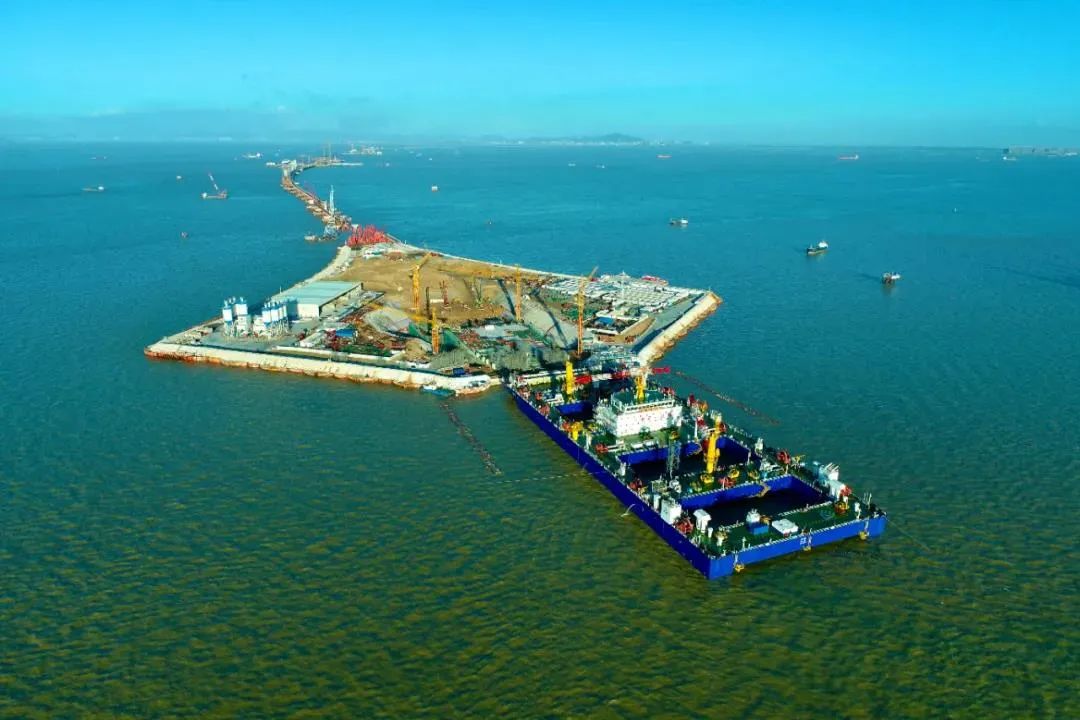 6月17日,历经34个小时的连续作业,中交集团承建的世界首例双向八车道钢壳沉管隧道——深中通道首节沉管成功沉放海底,与西人工岛实现“海底初吻”。深中通道首节沉管对接安装采用的是世界首创的自航式沉管运输安装一体船作业方式,实现了世界海工领域的一次跨越,标志着海底沉管隧道施工正式进入智能化时代,也将世界跨海通道施工技术提升到新高度。