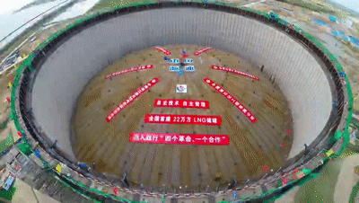 9月26日,由中国海洋石油集团有限公司(以下简称“中国海油”)自主设计、自主建造的4座22万立方米LNG(液化天然气)储罐在江苏盐城成功升顶。这是国内最大单罐容积LNG储罐项目,也是国内一次性建设规模最大的LNG国家储备基地,标志着我国LNG储罐核心建造技术再上新台阶。