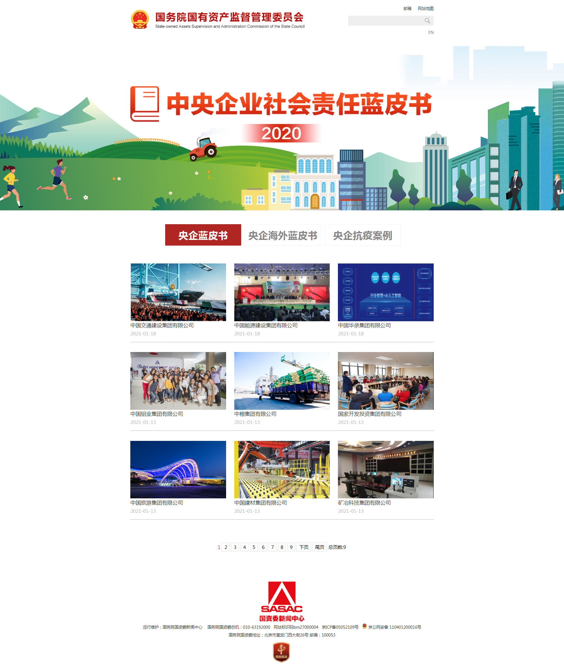 2021年1月28日,国务院国资委网站“2020中央企业社会责任蓝皮书”专题正式上线。