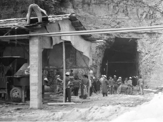 1969年拍摄的061基地原3535厂防空洞洞体建设。