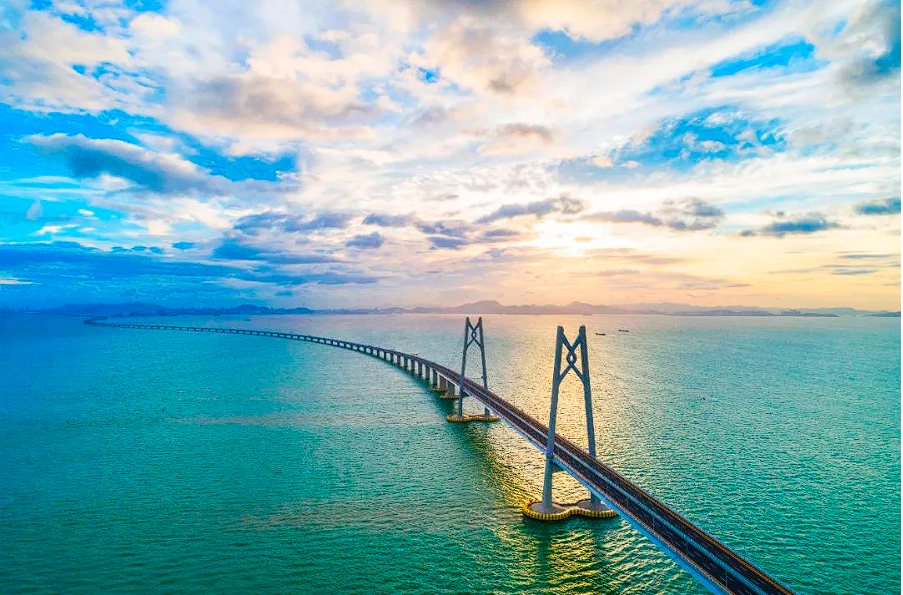 晨光中的港珠澳大桥飞架海面