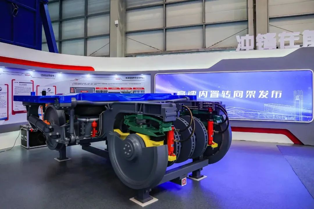 第二是采用了油气悬挂技术,将一系减振器的阻尼功能增加了抗侧滚功能,解决了内置式转向架一系侧滚功能不足问题;同时保留了转向架转臂定位的成熟结构,适用于动车组的高速运行,目前的产品就设计速度达到400km/h,试验台速度达到了600km/h,动车组的稳定性、平稳性等各项技术指标满足相关标准要求。