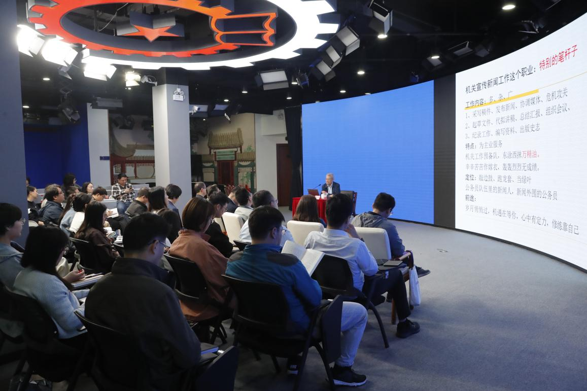 梁衡以“新闻宣传工作者的责任、修养和可能的空间”为题,深入剖析机构新闻宣传特点,结合工作经历和人生感悟,围绕新闻写作原理、新闻工作者责任和修养、职业发展路径等三方面内容进行授课。梁衡结合在《人民日报》工作期间的实践案例,着重强调了新闻中政治把关的重要性,提出新闻工作者要有“负责、勤奋、思考、追求”等修养和品格,勉励新闻工作者勤思敏学、守正创新,在报国治学中实现人生价值。