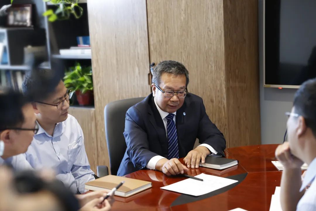 王永庆与科研人员讨论工作