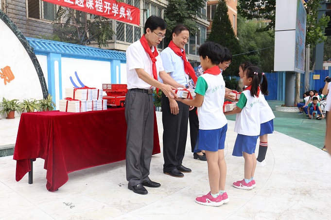 玉泉小学学生接受赠书