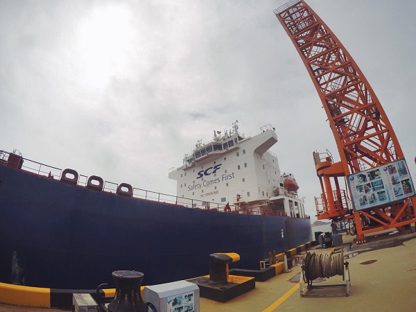 图为在中化泉州石化装满成品油的5万吨柴油船,即将开往“一带一路”沿线国家。(国资委新闻中心 马语谦摄)