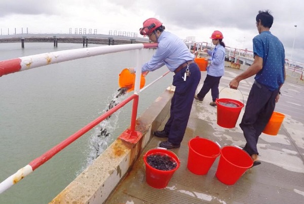 在采访当日,记者正巧赶上中化泉州石化开展海洋生态修复、增殖放流的生态补偿活动。据了解,这样的活动已经成为常态,每年放流约1000万尾/粒各类鱼苗、虾苗。附近以捕鱼为生的渔民们告诉记者,自从中化泉州石化在此地增殖放流后,明显看到了鱼类品种的增加和鱼量的增长,收入水平也有了明显的提高。