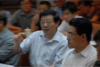 国资委副主任李伟在“金宏工程”专题汇报会上与参会同志讨论