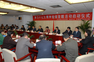 11月19日下午,国资委举行了直属机关学习十七大精神短信答题活动启动仪式。国资委副主任王瑞祥同志及国资委直属机关党委、信息中心、中国移动通信集团北京有限公司等单位的领导,机关各厅局和各离退休干部局的代表70余人参加了启动仪式。