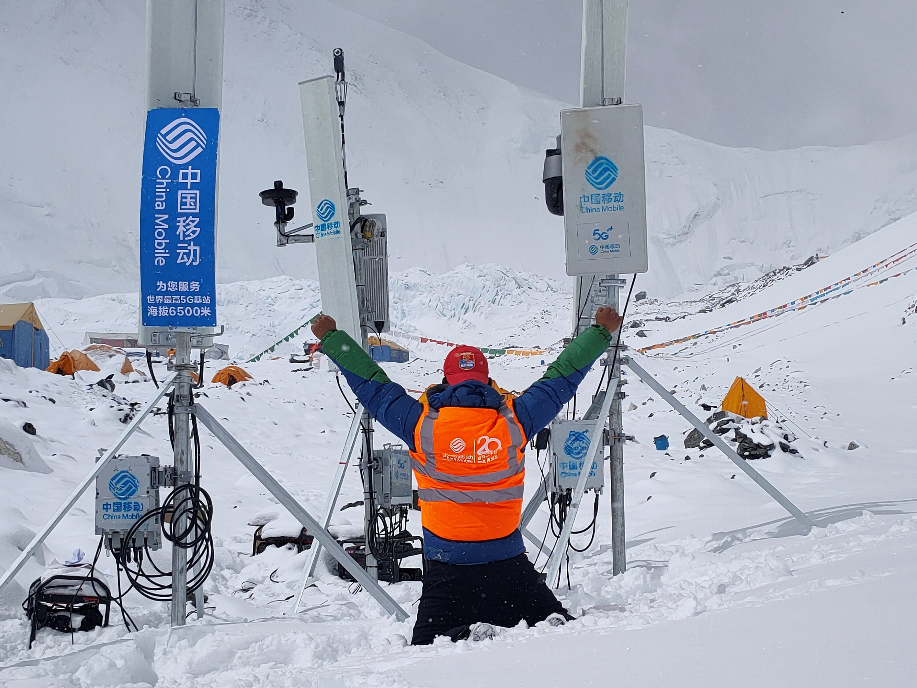 图2 中国移动在珠峰6500米建成了全球海拔最高的5G基站