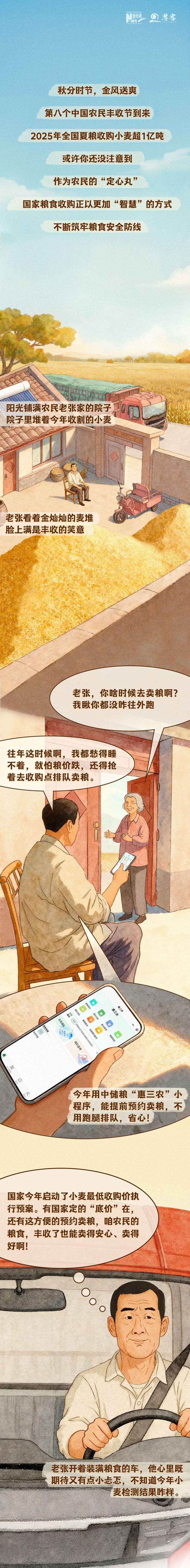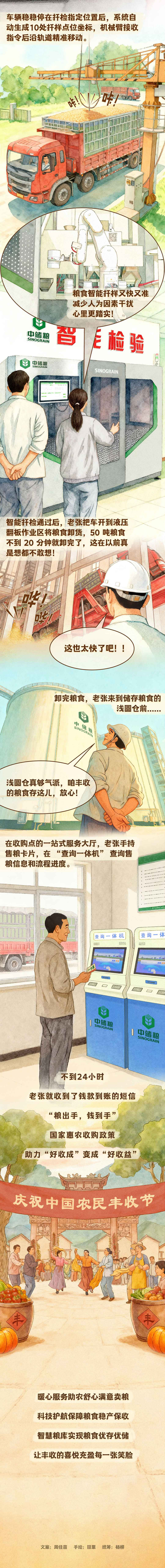 又是一年丰收时,此刻小麦入仓、玉米金黄、稻谷飘香、千里镶黄。近年来,中储粮集团高效执行国家粮食收储政策,助力兜住农民“种粮卖得出”底线,积极发挥稳市场、稳预期作用。同时,坚持以绿色科技、智慧管理赋能粮食收储,为筑牢大国粮仓发挥支撑作用。从田间地头到现代粮仓,粮食流通的旅程正悄然变化,一幅丰收新“智”景徐徐展开……