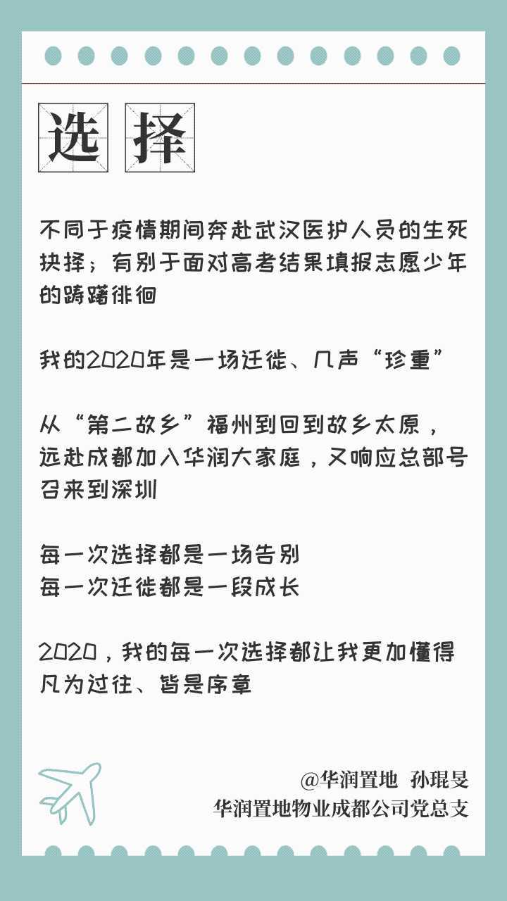 2020年有很多故事,有欢笑有悲伤、有笃定有徘徊、有汗水还有辉煌……如果要用一个词来概括这一年,你会选哪个?今天,就让我们一起回顾2020年,看看华润“润小编”们的经历中,是不是也有你的故事。
