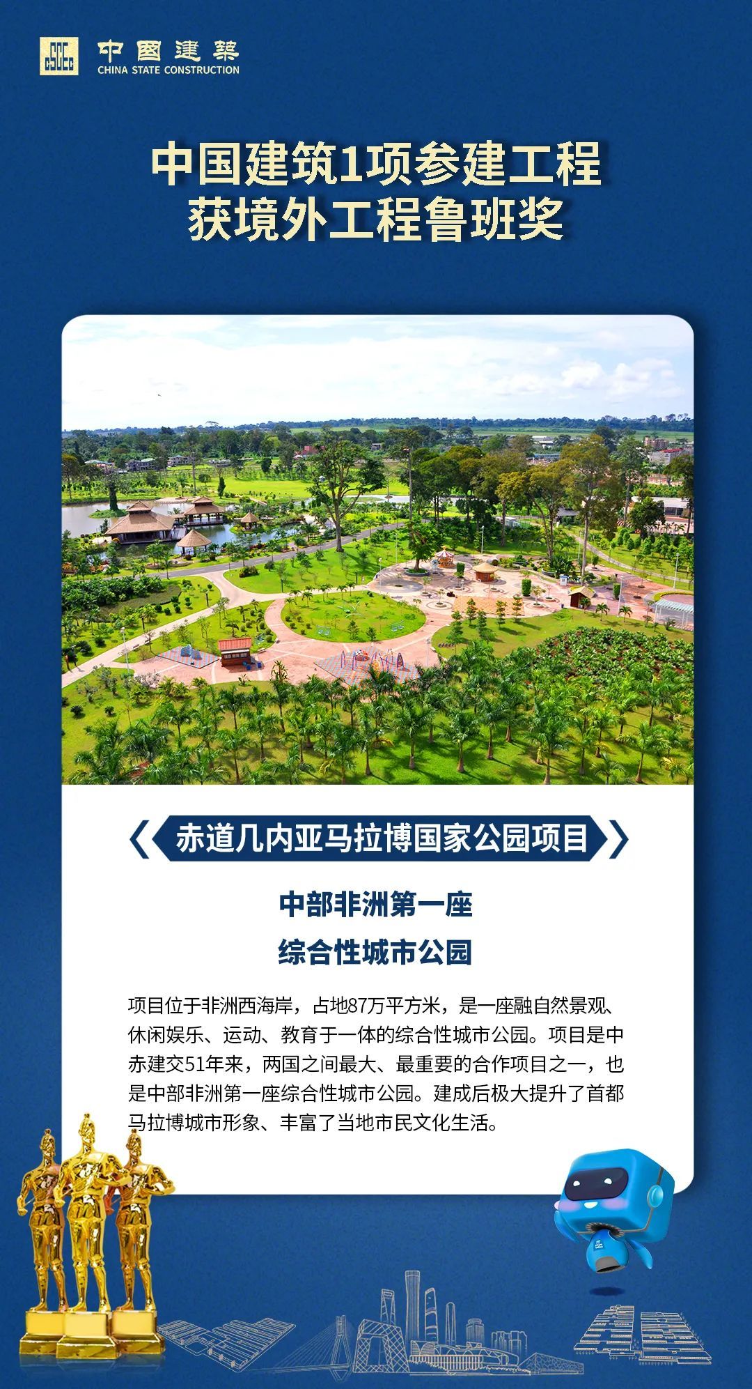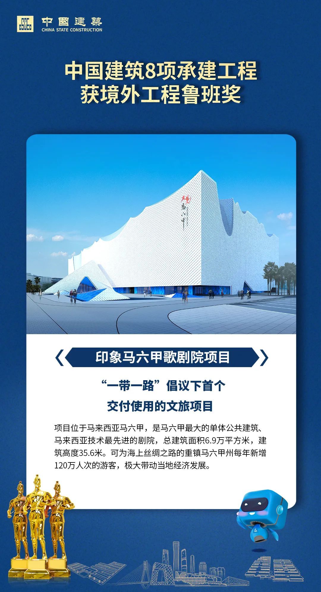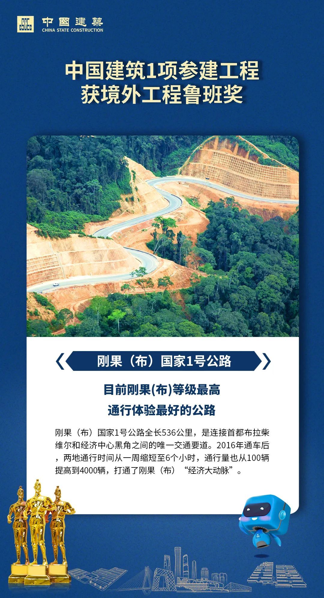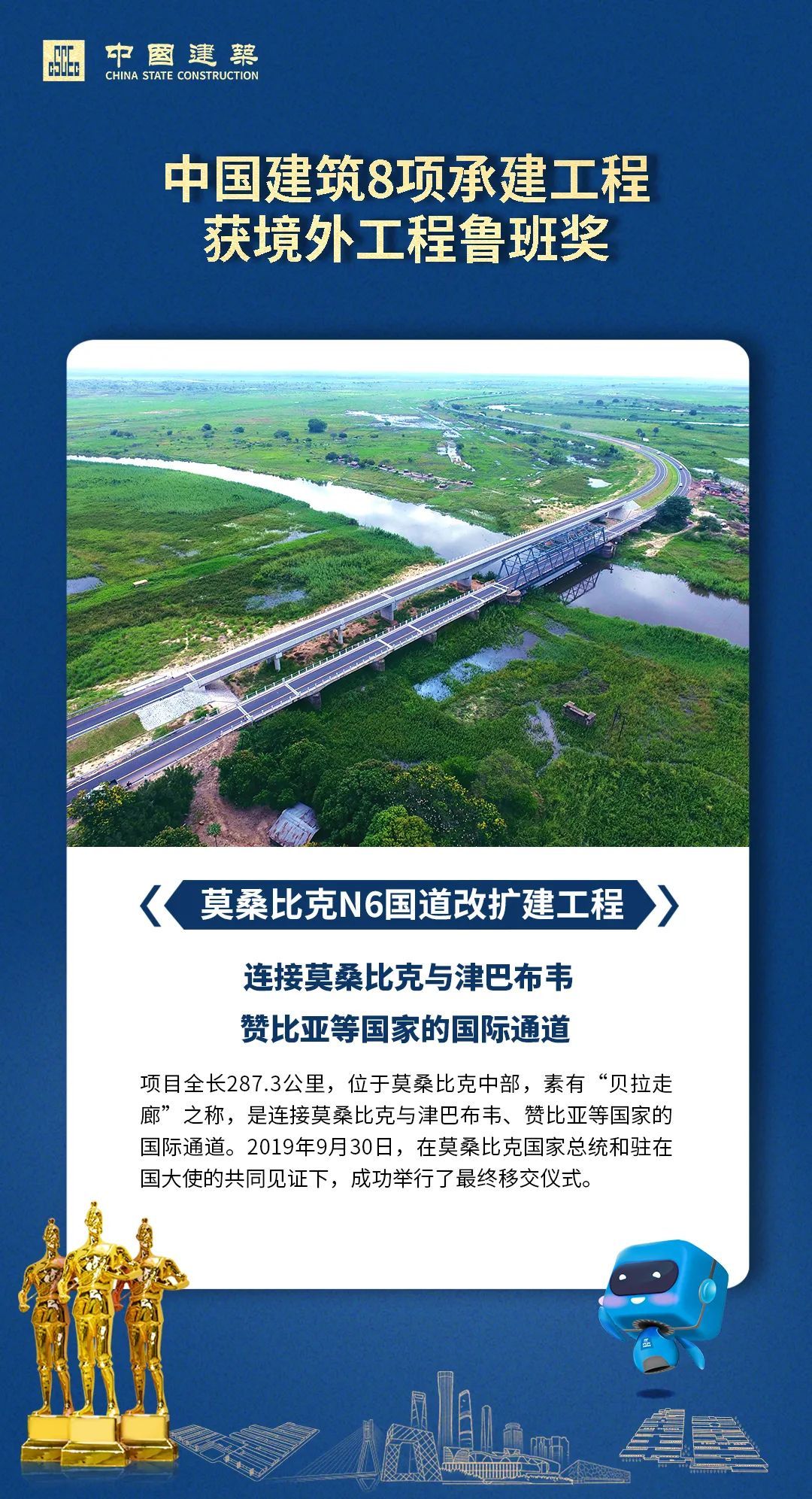 近日,中国建筑业协会公布了2020年境外工程鲁班奖评选结果。中国建筑承建的莫桑比克N6国道改扩建工程、印度尼西亚万鸦老至比通高速公路大桥、中国建筑巴基斯坦PKM项目、中国驻慕尼黑总领馆馆舍新建工程、刚果(布)国家1号公路、印象马六甲歌剧院项目、太子集团总部项目、马来西亚吉隆坡标志塔项目,中国建筑参建的赤道几内亚马拉博国家公园项目,共9项工程入选。下面一起看看今年中国建筑获奖工程风采吧!