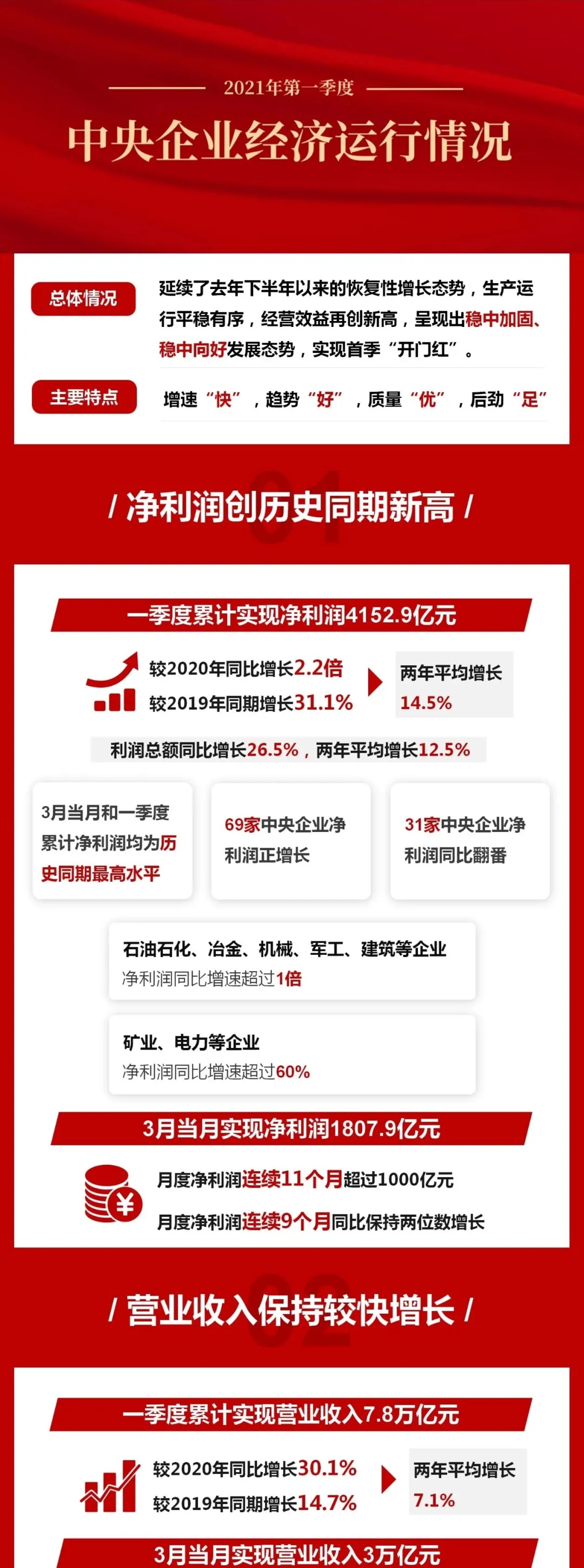 一图了解2021年第一季度中央企业经济运行情况