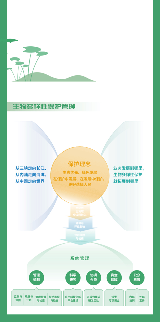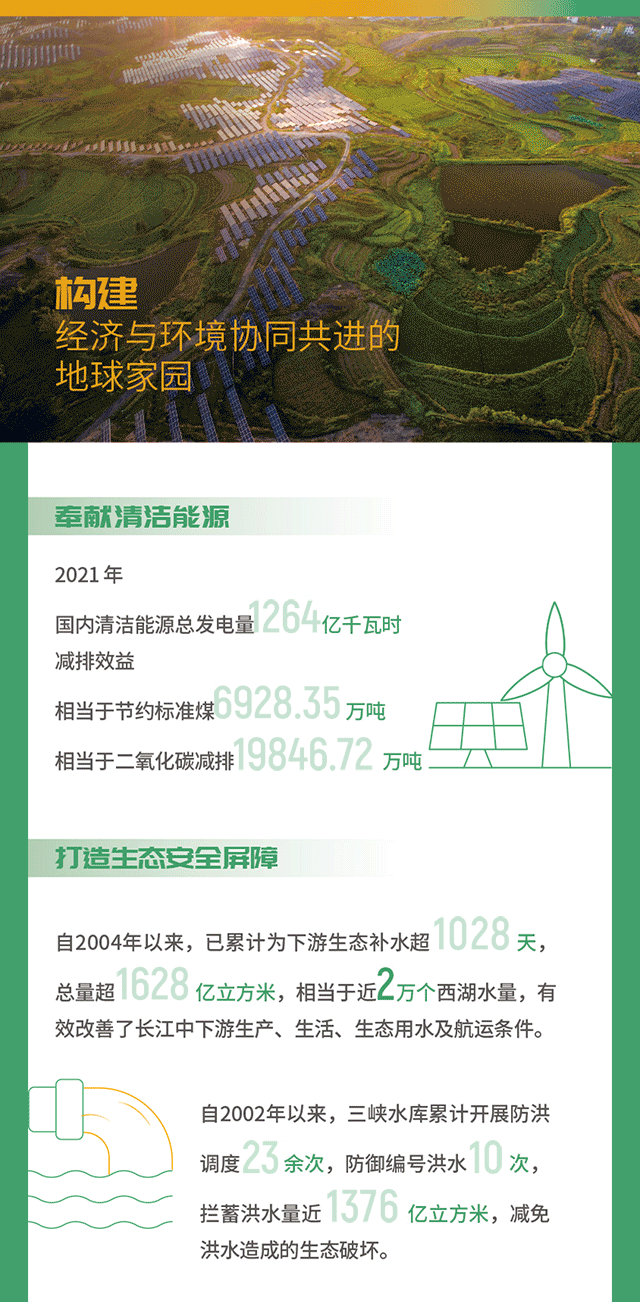 报告深入贯彻习近平主席在《生物多样性公约》第十五次缔约方大会上的主旨讲话精神,以“守护多样之美、共建地球家园”为主题,通过“和谐共生构建人与自然和谐共生的地球家园”“协同共进 构建经济与环境协同共进的地球家园”“全球共荣 构建世界各国共同发展的地球家园”三大篇章,以简洁的文字、生动的图片、详实的内容、丰富的案例和中英双语形式,详细披露了中国三峡集团在长江珍稀特有物种保护、长江流域生态修复、实施清洁能源和长江生态环保“两翼齐飞”以及加强全球生物多样性保护合作等方面作出的努力,生动诠释了中国三峡集团在助力生态文明建设、推动高质量发展和共建地球生命共同体等方面的使命担当,彰显了中国三峡集团坚持贯彻“生态优先、绿色发展”理念,努力“在保护中发展、在发展中保护,更好造福人民”的负责任企业形象。