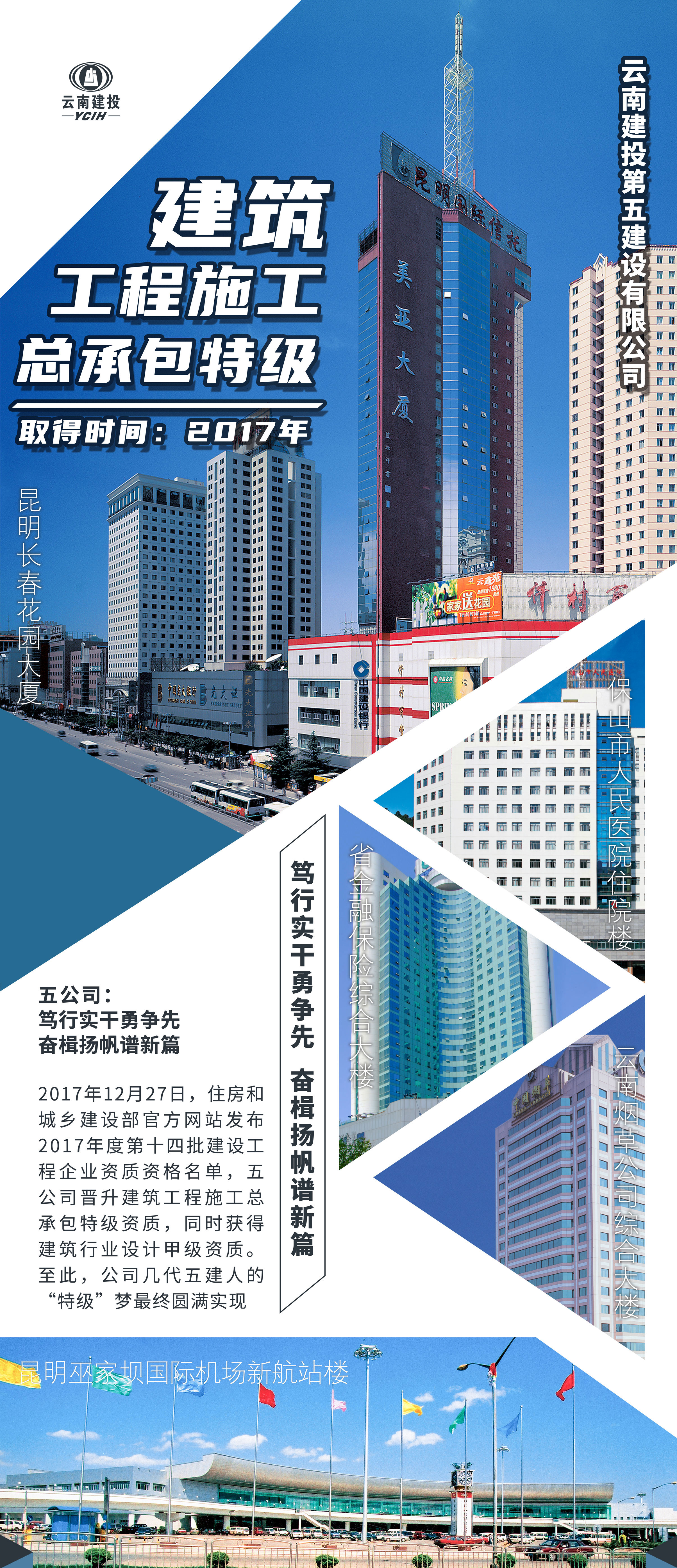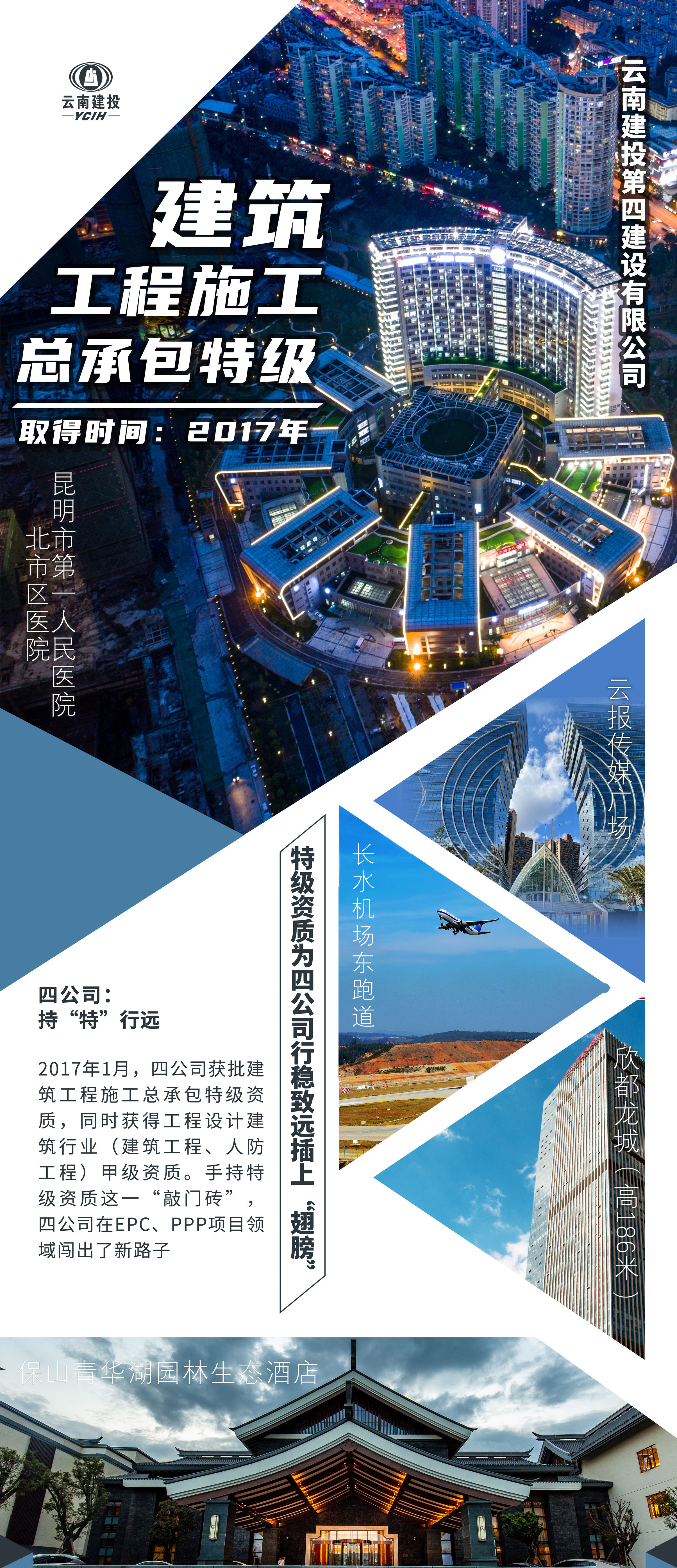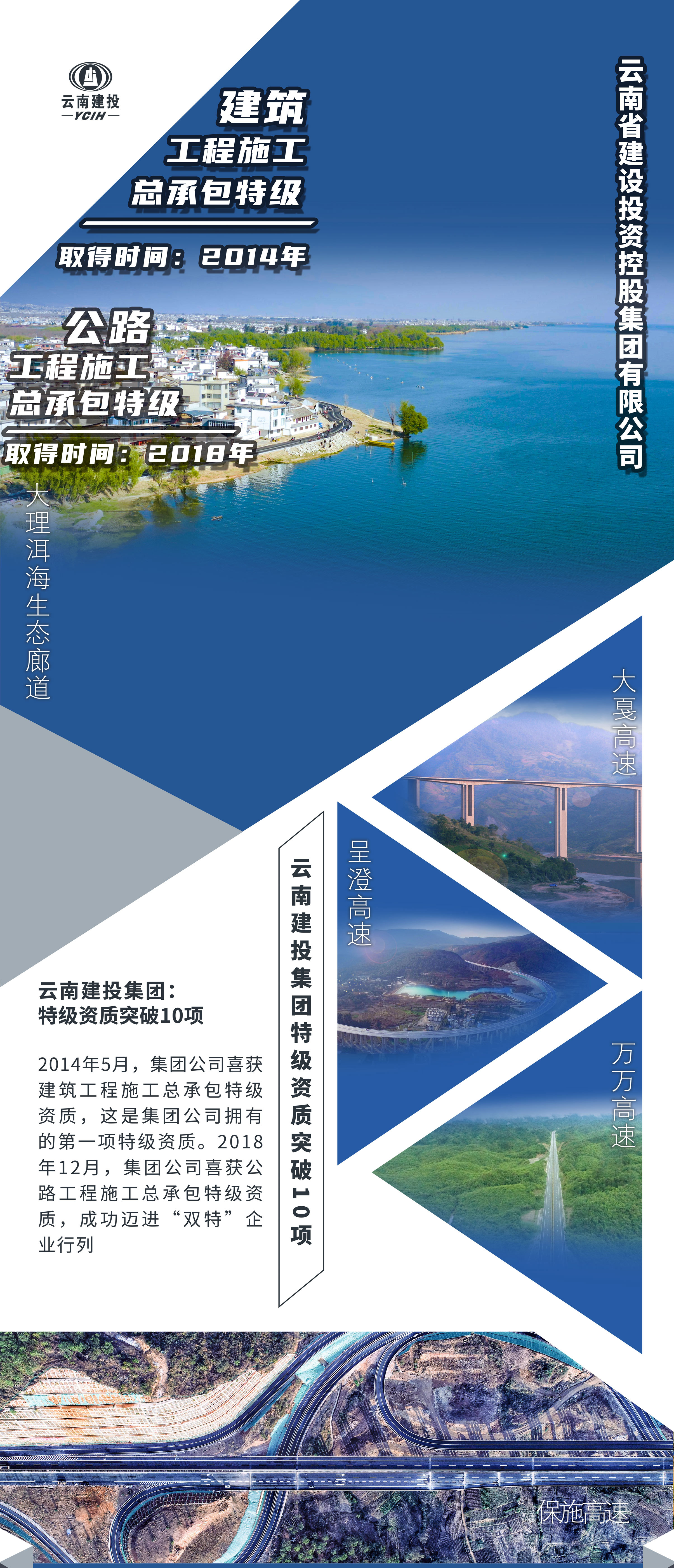 近年来,云南建投集团持续提高资质整体实力,有序规划各单位资质发展目标,资质类别全方位扩充,资质等级持续提升。目前集团拥有各类资质781项,有8家公司迈入特级企业行列,共计拥有10项特级资质,覆盖建筑工程、公路工程、市政公用工程和水利水电工程领域。
