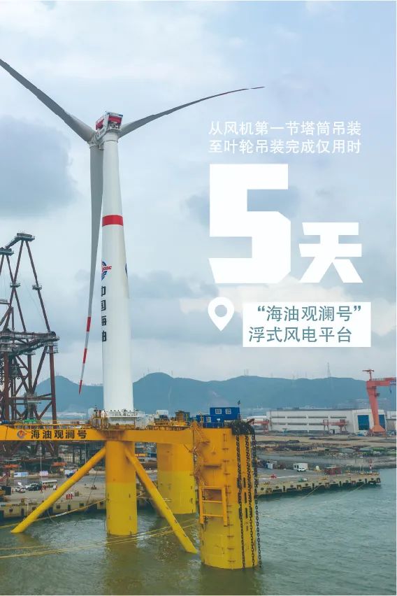 自2023年2月23日从海油工程青岛建造场地顺利出坞,从青岛至珠海历经18天,拖航近1300海里,“海油观澜号”在拖轮“德宏”号的拖带下顺利抵达珠海福陆码头;从3月16日第一节塔筒开始吊装至最后的叶轮吊装完成,前后只用了5天的时间。3月26日,“海油观澜号”启航,在有限湛江分公司文昌油田群所在海域,进行海上安装、调试,预计于今年6月底实现并网投产。