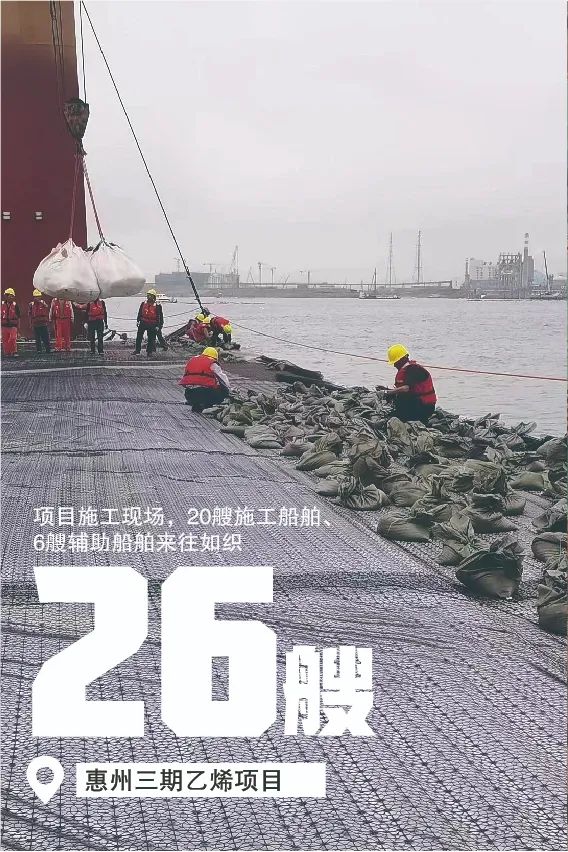 三月末,广东惠州三期乙烯项目施工现场一片热火朝天,现场20艘施工船舶、6艘辅助船舶来往如织,700余名施工人员正紧张有序地忙碌着。项目管理团队正大力推广模块化施工,高质量推进项目建设。截至目前,土工布铺设完成152万平方米,累计完成约63.5%;海上挖泥完成41.4万立方米,累计完成约57.3%。该项目建成后,将拥有全球单套最大的茂金属聚乙烯装置,有效填补国内高端绿色化工产品空白,促进我国化工产业迈向全球价值链高端。