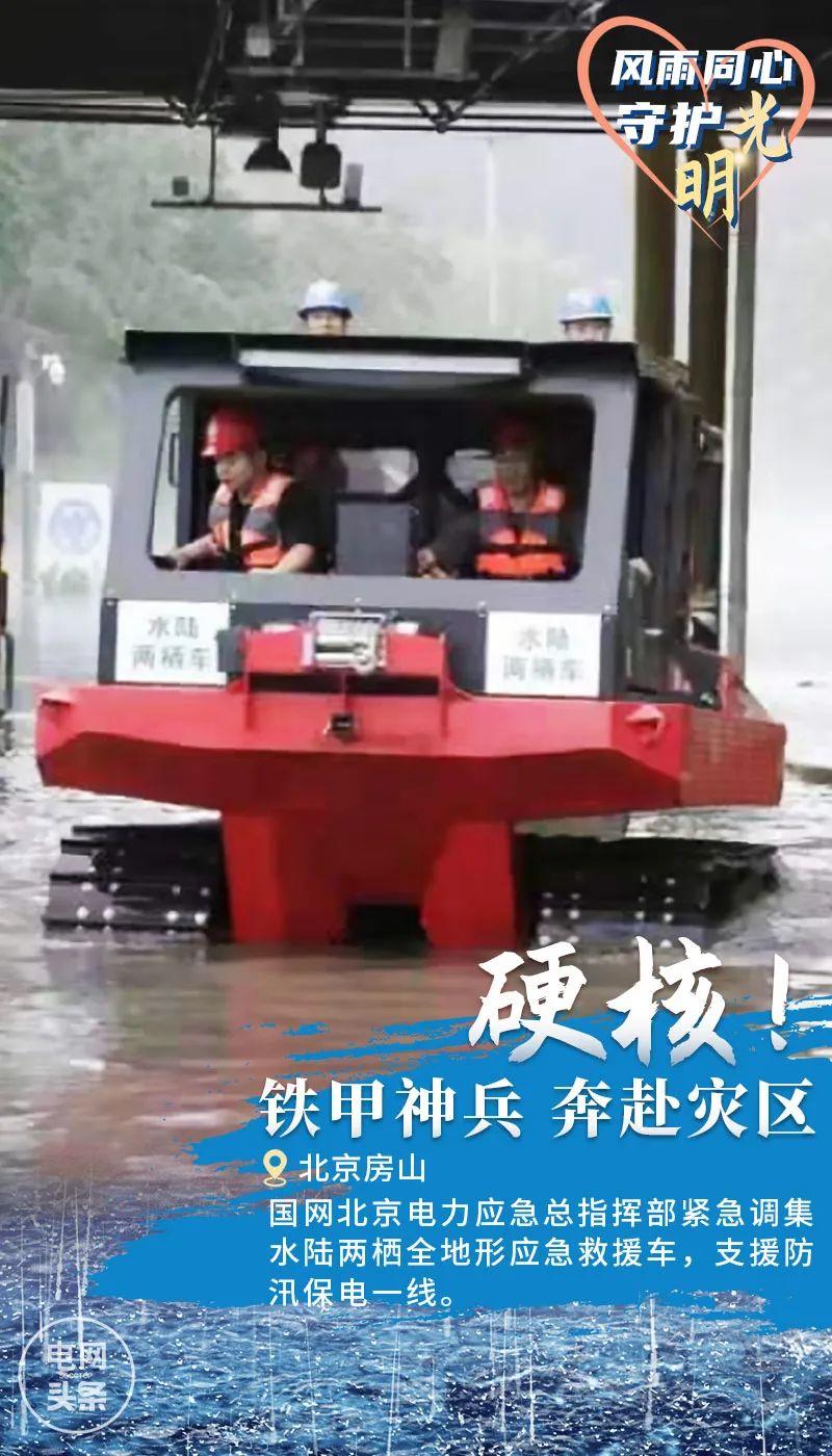 近日,华北、东北多地出现持续强降雨,遭遇洪涝灾害。国家电网开展防汛抗洪救灾工作,坚决扛牢电力保供首要责任。工作人员冲锋在前,应用“硬核”技术,恢复受损电力设施。
