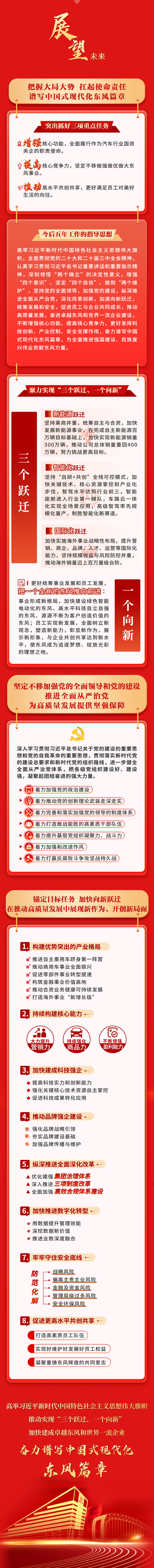 近日,东风汽车集团有限公司第十次党员代表大会在武汉正式开幕,大会号召全体东风人锚定目标任务,加快向新跃迁,在推动高质量发展中展现新作为、开创新局面。