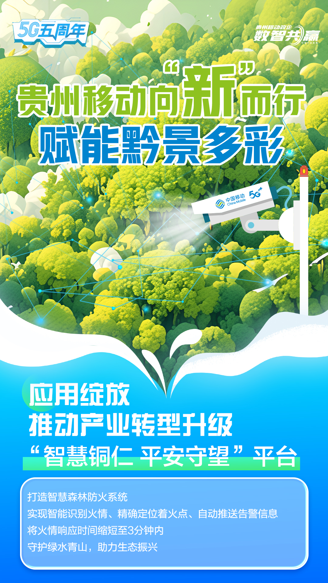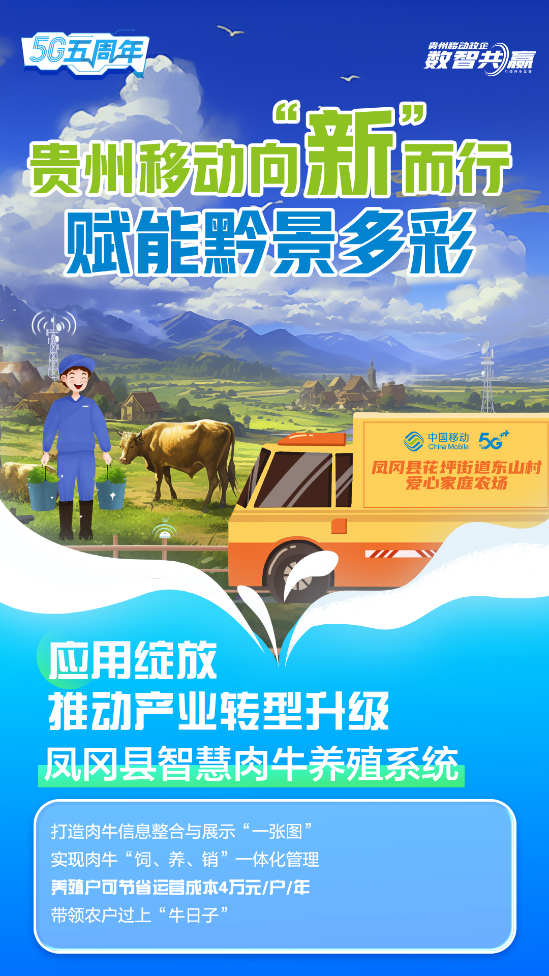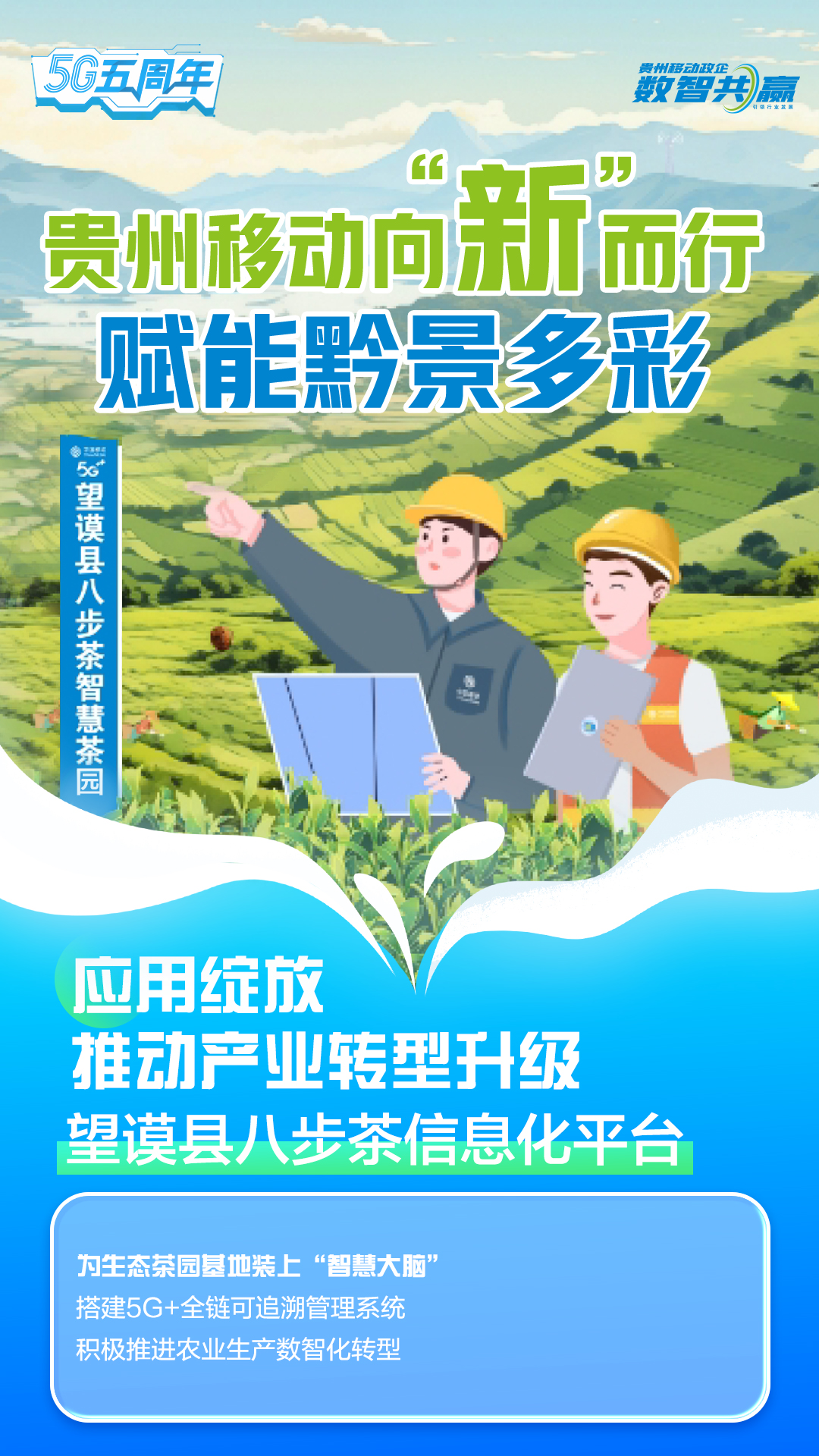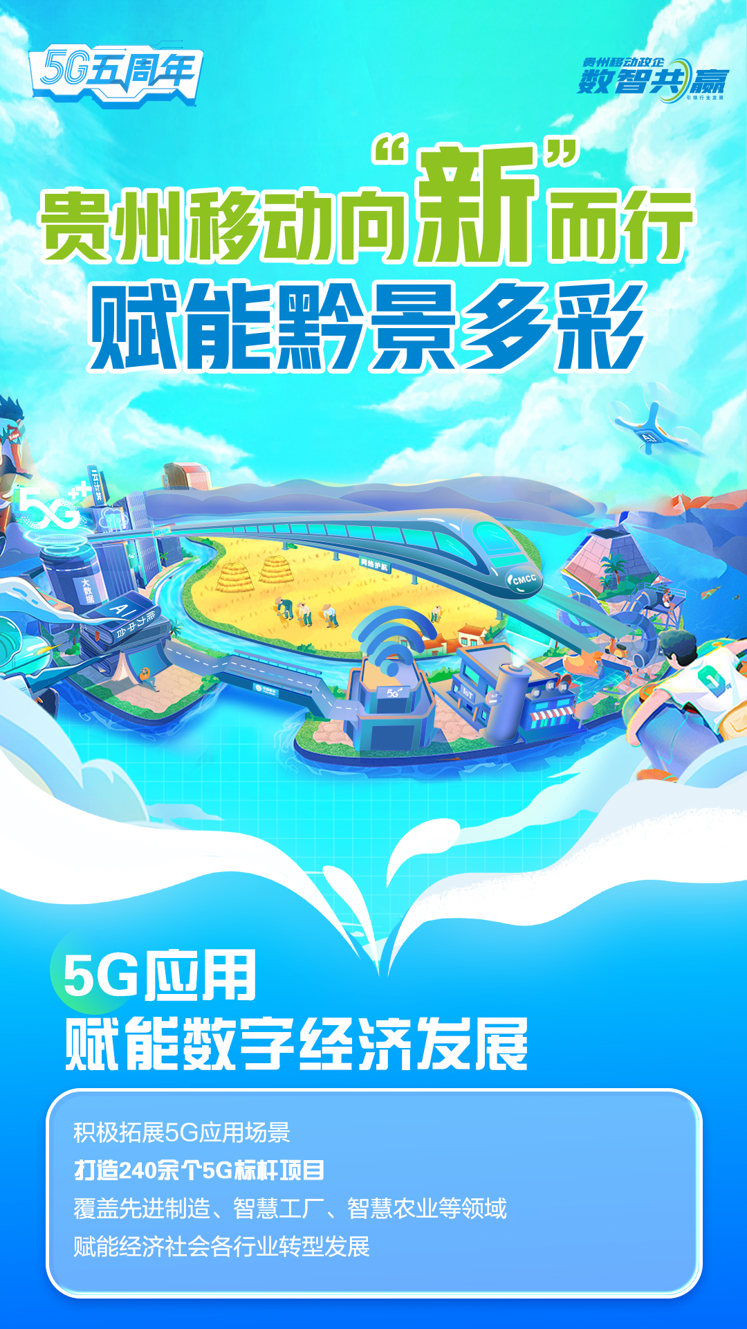 近年来,中国移动积极拓展5G应用场景,推动5G应用广泛赋能经济社会各行业,在贵州打造了240余个5G标杆项目,覆盖先进制造、智慧农业、智慧工厂等领域,为助力贵州省数字经济发展提供移动方案,积极践行“为多彩贵州添彩,为数智社会赋智”的企业新使命。