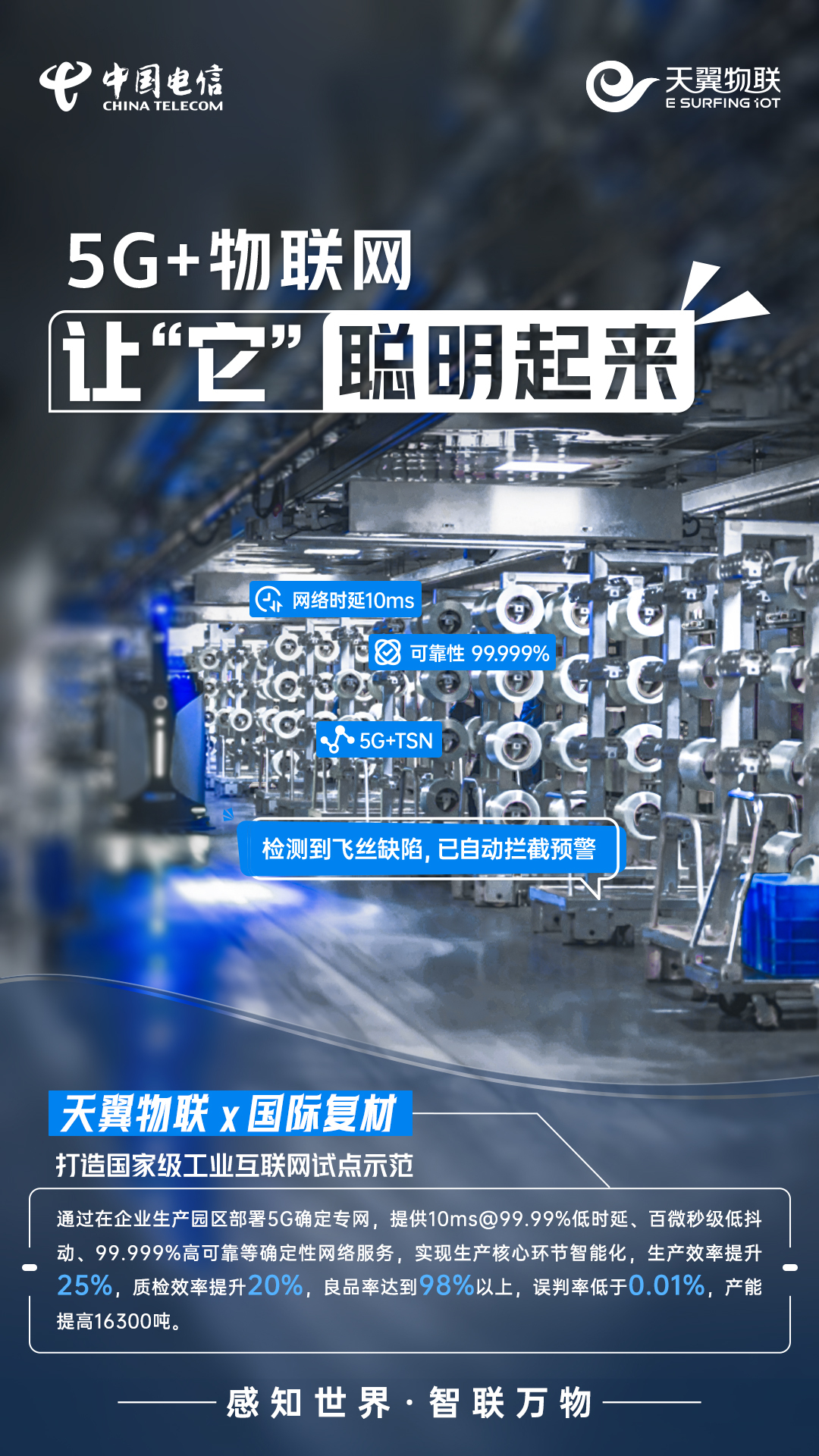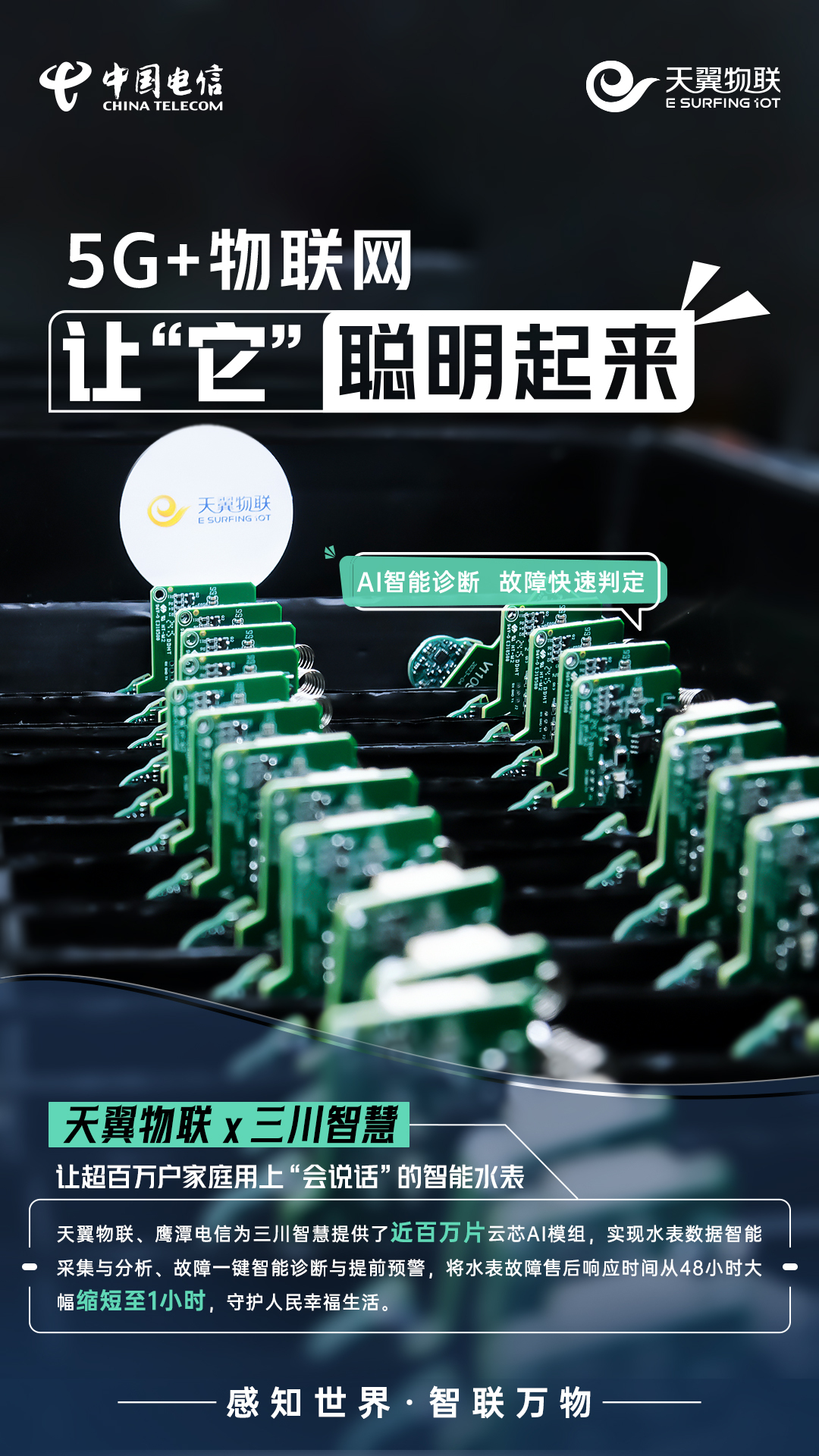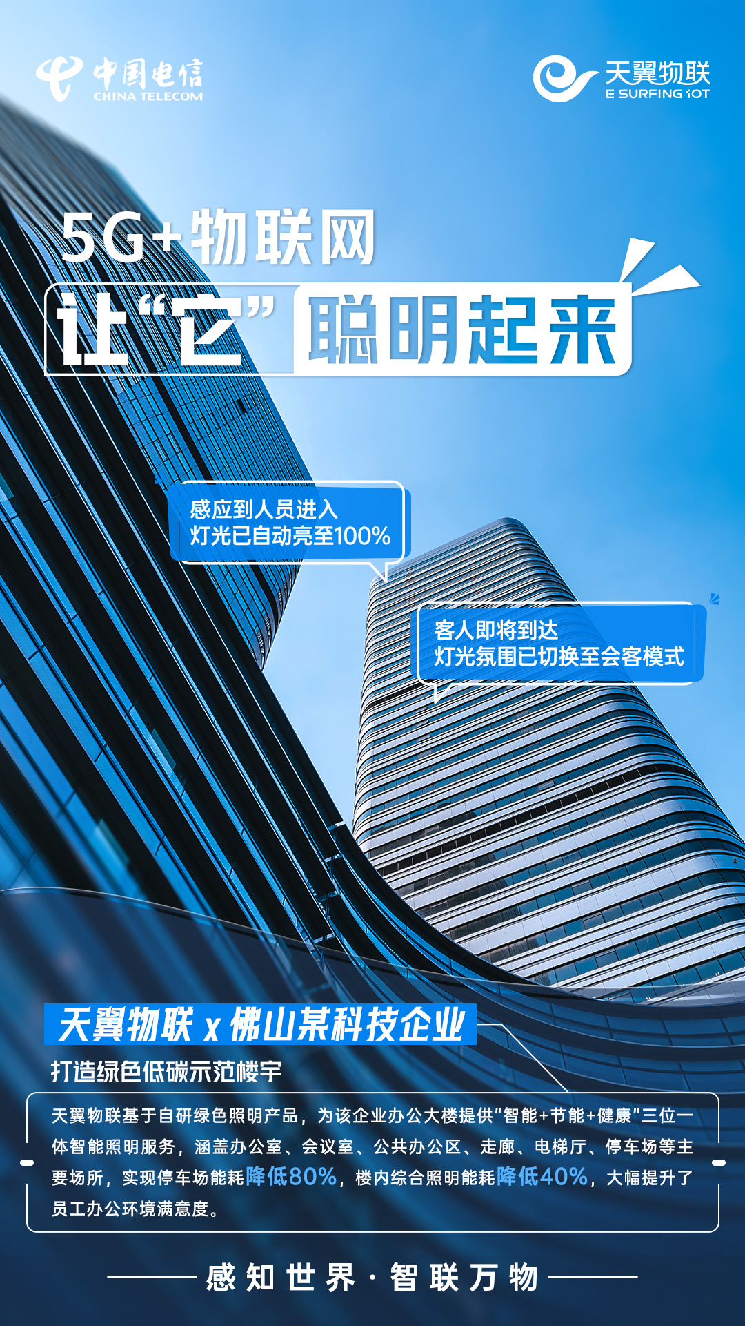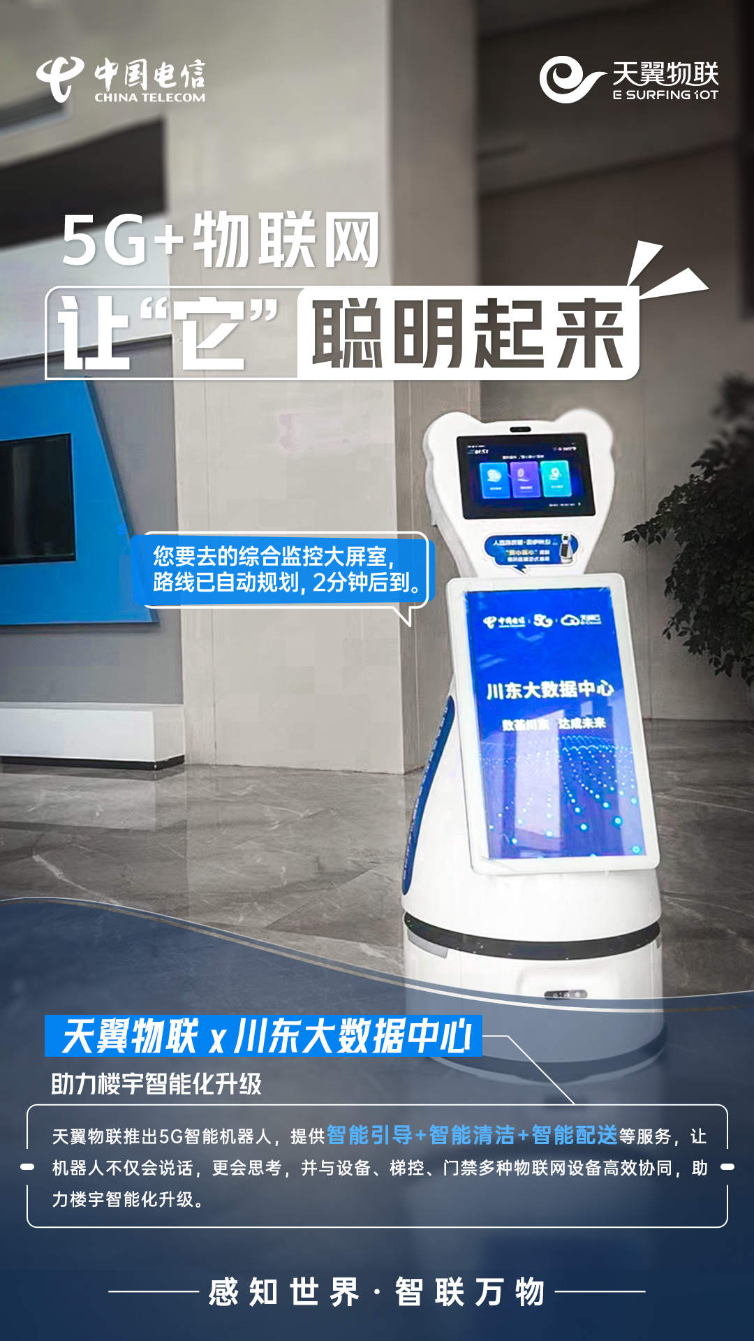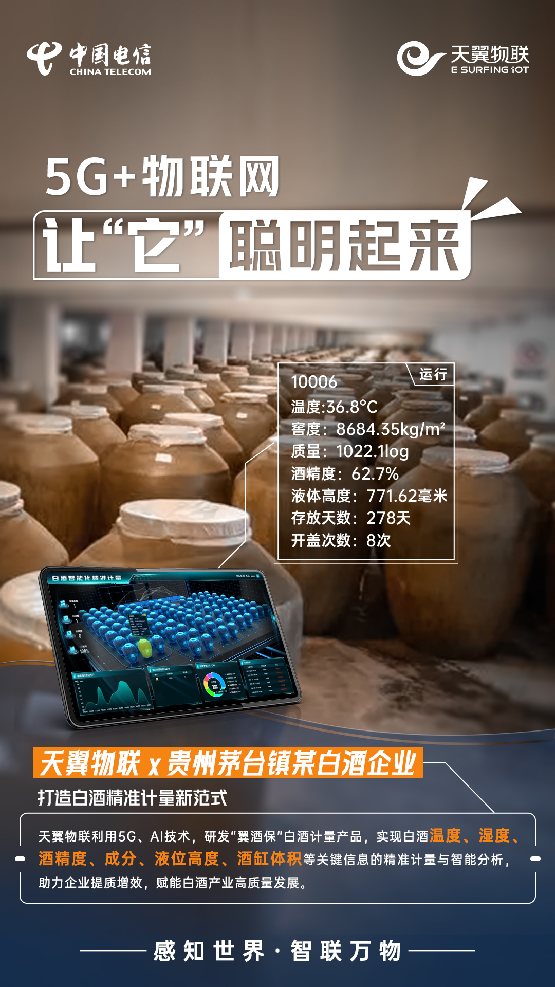 近年来,中国电信天翼物联坚持科技引领,充分利用5G+物联网技术为万物赋“灵”,让随处可见的“它”,不仅能感知,会说话,还擅长思考,变成聪明灯、聪明酒、聪明水、聪明车间、聪明楼宇、聪明城市,以应用场景创新推动科技成果转化为现实生产力,为加快打造人、机、物智能互联的新型信息基础设施贡献力量。