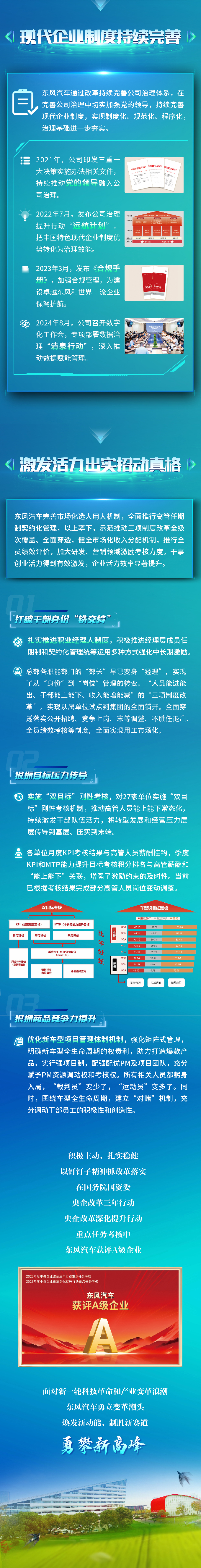 今年1-10月,东风公司新能源车销量达70万辆,同比增长82.3%,改革成效初显。面对汽车行业深刻变革,东风公司深入实施“转型升级三年行动”,持续加大改革力度,向改革要活力要动力,着力打通制约高质量发展的堵点、卡点,加快形成同新质生产力更相适应的生产关系,增强核心功能、提升核心竞争力,当好汽车行业国家队、主力军。