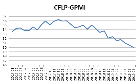 据中国物流与采购联合会发布,2019年6月份全球制造业PMI为50%,较上月下降0.5个百分点,较去年同期下降5个百分点,连续3个月环比下降,降至荣枯线。分区域看,非洲制造业PMI较上月持平,亚洲、美洲和欧洲制造业PMI均有小幅下降。