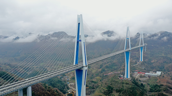 2019年12月30日,历经四年多,中交集团参建的世界第一混凝土高塔桥贵州平塘特大桥通车运营。