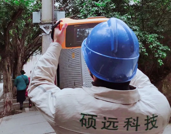 重庆硕远科技有限公司的工作人员采用声波成像仪对电气设备进行检测