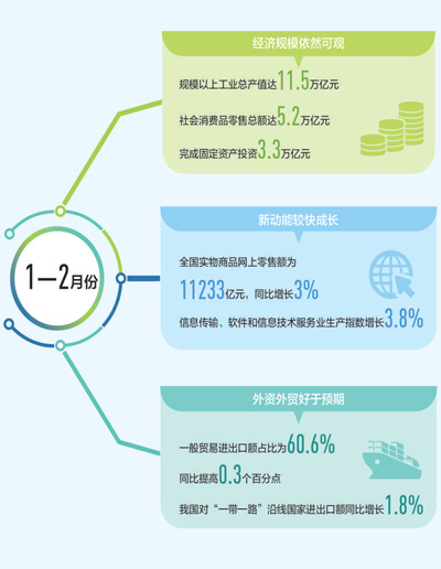 二是新经济新动能较快成长,转型升级步伐不停。虽然疫情对传统消费和产业造成了较大冲击,但压力之下也蕴含巨大潜力和机遇,线上消费和智能经济爆发式增长,对冲了部分负面影响,为经济高质量发展开拓了新空间。1—2月份,全国实物商品网上零售额11233亿元,同比增长3%;2月份快递业务量完成27.7亿件,同比增长0.2%。一些产品逆势增长,生鲜电商、远程医疗、在线教育、线上办公等新模式新服务快速扩张。1—2月份,信息传输、软件和信息技术服务业生产指数增长3.8%;智能手表、智能手环、半导体分立器件产量同比分别增长119.7%、45.1%和31.4%。大数据、云计算、智能制造、数字经济展现出强大潜力和良好发展势头。