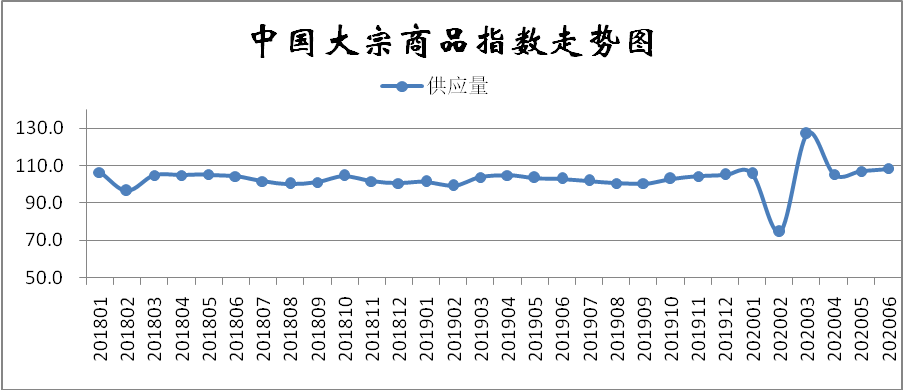 2020年6月份,大宗商品供应指数为108.3%,较上月上升1.3个百分点。供应指数连续两个月呈现上升走势,显示商品供应压力继续加大。近期,由于商品生产利润持续高位,生产企业生产热情高涨,商品产量不断增加,导致国内大宗商品市场供应压力持续加大。从各主要商品来看,本月除化工类商品供应增速有所减缓外,其余品种均呈现加快态势。