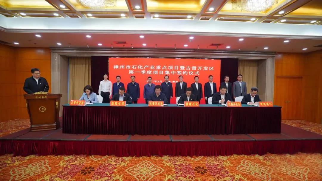 近日,漳州石化产业重点项目暨古雷开发区第一季度项目集中签约,福建石化集团一季度三个项目集中签约落地,总投资近350亿,年产值合计达460亿元,将带来28亿元的税收收入,谋篇布局石化全产业链项目取得新成效。