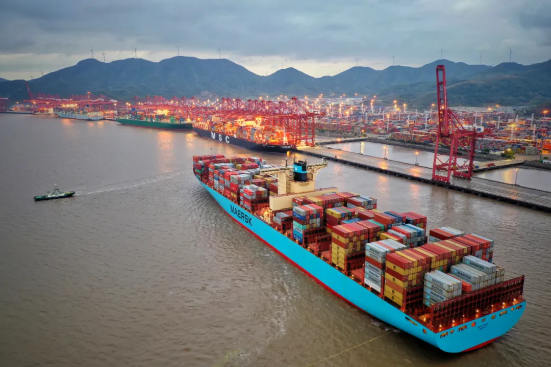 宁波舟山港穿山港区集装箱码头船只穿梭