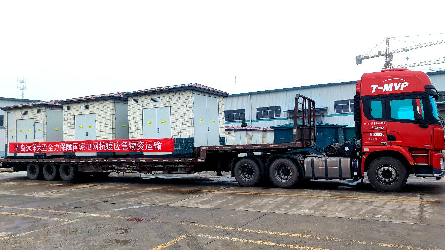 此外,根据国家电网在山东省内紧急调拨大型箱变的需求,远洋大亚在3月12日早上8点接到紧急任务后,小组快速进入工作状态,历经48小时,顺利将烟台与淄博两地的大型箱变运抵德州德城、临邑等地,保障了抗疫电力基建的顺利开展。