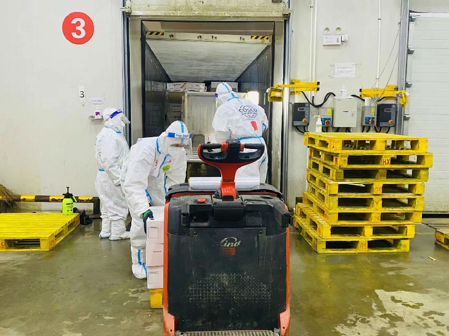 宁波中远海运冷链供应链银冷仓库作为上海市民生物资“第一存放点”中转查验冷库,负责对从上海口岸直接进入上海市存储、生产、销售的进口冷链食品实施中转查验预防性消毒、核酸检测和配送,关系着上海市民的菜篮子。