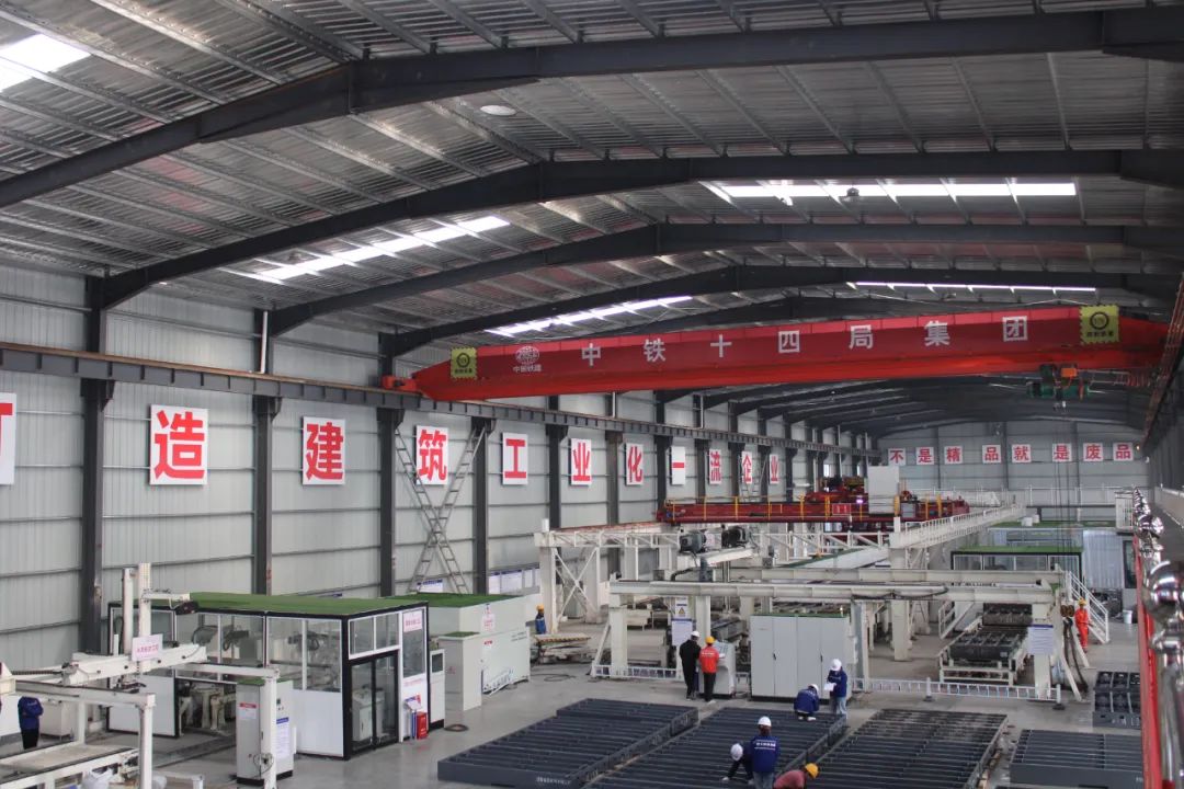 为保障通车后列车平稳高速运行,中铁十四局建设了面积达5000平方米的智能化双块式轨枕生产车间,设计建造了国内首条全自动数字仿真双块式轨枕智能生产线,确保轨枕生产误差在0.5毫米以内,日生产轨枕1600根,工效提高60%,满足贵南高铁广西段88.9万根双块式轨枕预制任务需要。