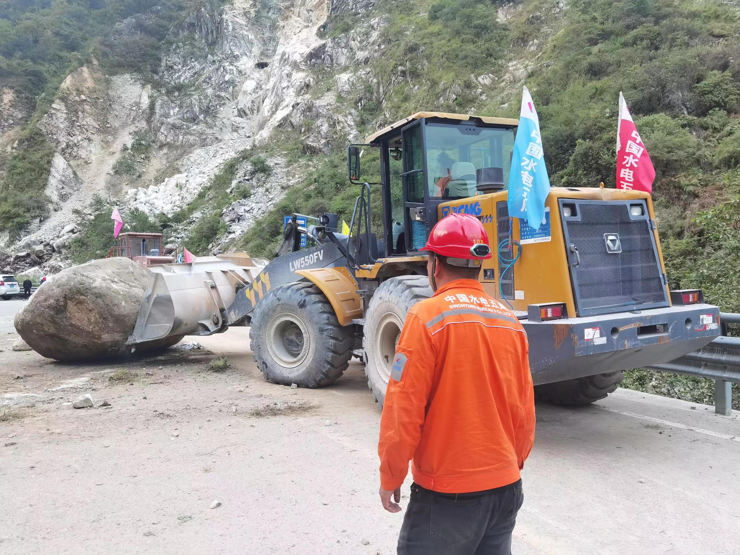 位于震中区域的水电五局三公司硬梁包项目在地震发生后,在保证自身安全的情况下,立即组织人力、机械,对道路上的岩石进行清理,打通救援“生命通道”,同时调拨物资设备前往震中磨西镇参与驻地抢险救灾。