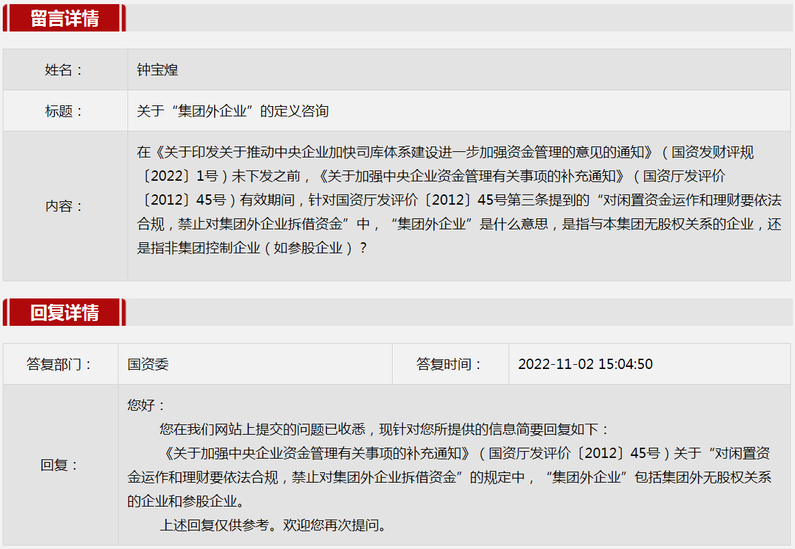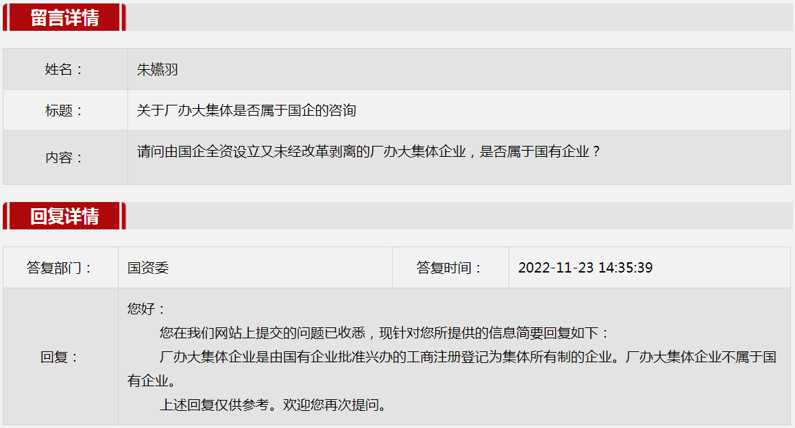2022年11月国资委网站政务咨询栏目部分网友提出的咨询,我们初步做出了认真的回应,现选择五条关注度高、点击量高的问题,再次推荐分享。