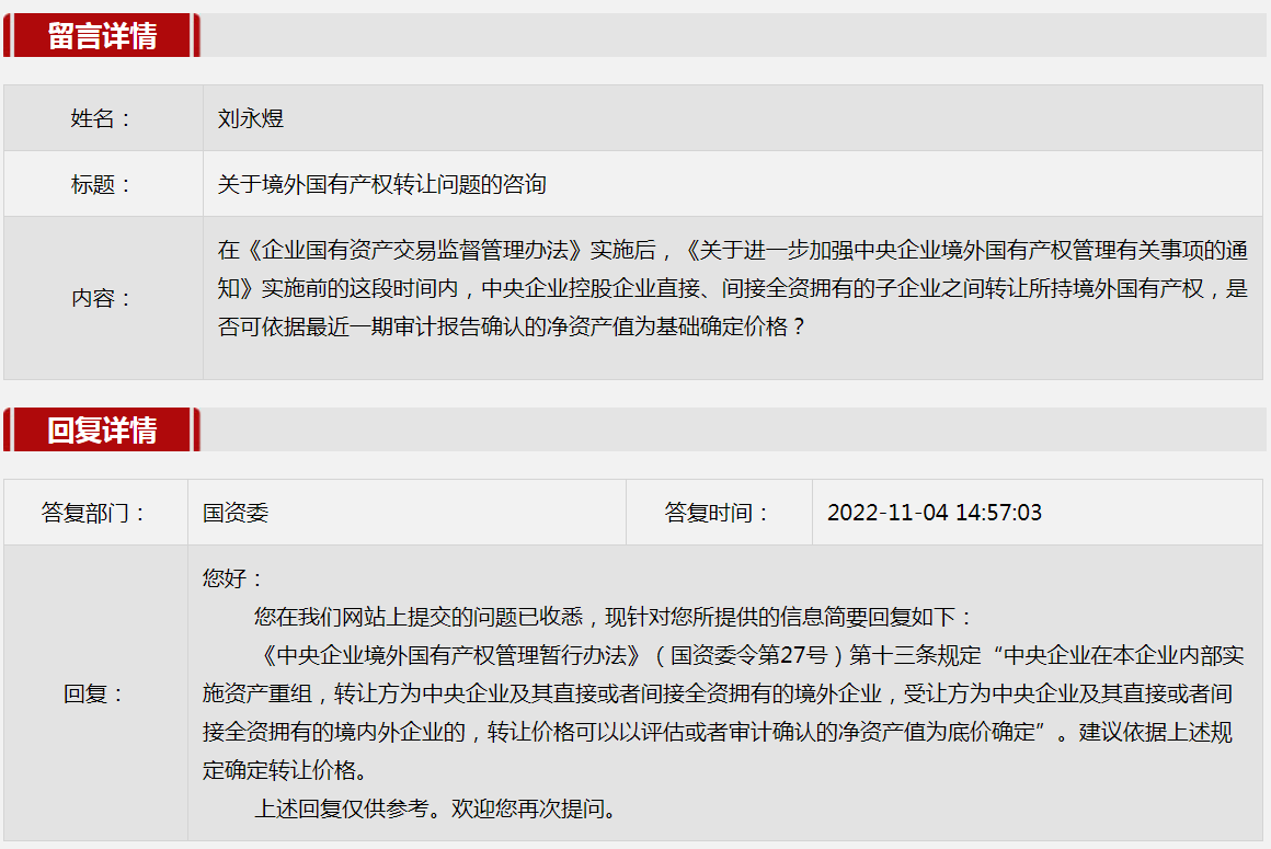 2.关于境外国有产权转让问题的咨询。