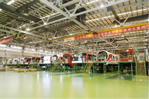 一列列城轨车辆在中车株机城轨事业部组装成型