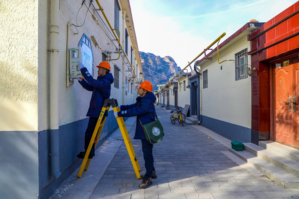 国网北京门头沟供电公司员工在妙峰山镇水峪嘴村检查“煤改清洁能源”用电设备