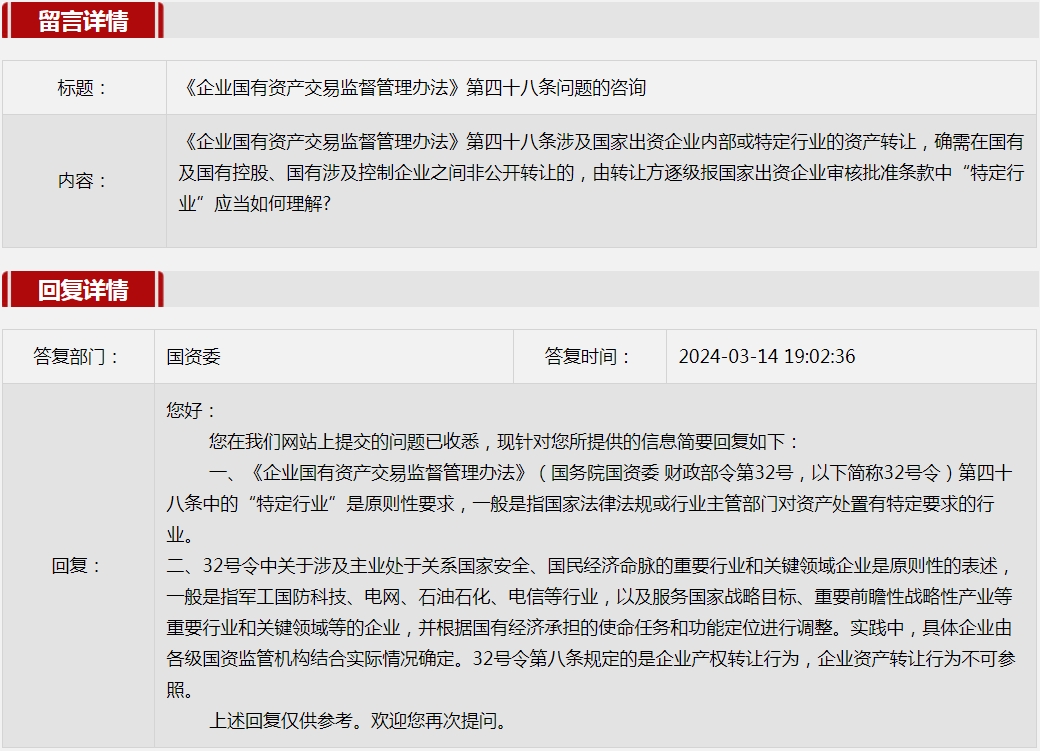 4.《企业国有资产交易监督管理办法》第四十八条问题的咨询
