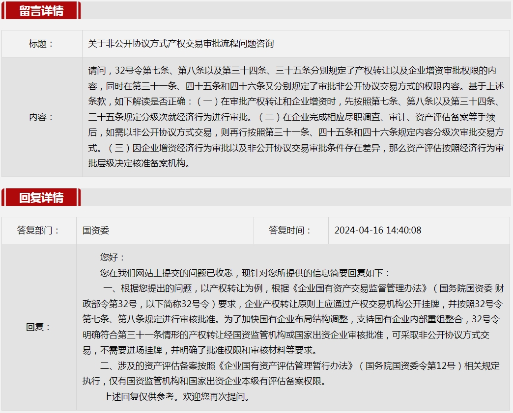 4.关于非公开协议方式产权交易审批流程问题咨询