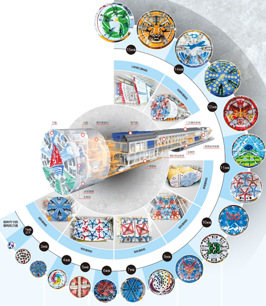 “大脸盘”,长满“铁齿钢牙”,专门“啃”硬岩、“吞”沙土;身披钢铁盔甲,外可抵挡压力、防止坍塌,内可由螺旋输送机将渣土运出。施工过程中,盾构机每掘进一段距离,便停下“歇歇”,用预制好的混凝土管片拼装隧道。这样,隧洞一挖完,隧道也随之建好。