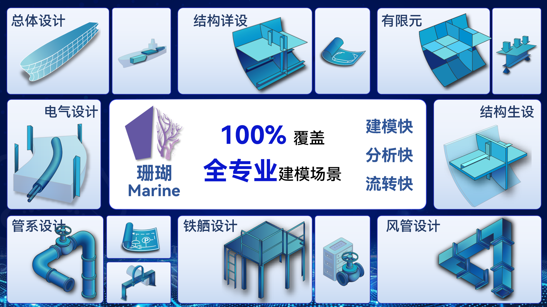 锚定关键核心技术突破。系统梳理船舶工业软件关键技术谱系,集中突破CAD、PLM、CAM、CAE等软件重点“卡脖子”环节。CAD方面突破语义化建模等关键技术,填补国内详设生设一体化空白,解决设计变更计算难等问题,核心模块源代码自主率97.75%,功能覆盖率相比国外主流软件达70%,实现全专业、全流程覆盖;PLM方面突破产品数据一体化定义等关键技术,核心模块源代码自主率96.19%,在中船动力等重点单位定制化部署,为船舶行业用户提供更优方案;CAM针对小组立机器人焊接等工艺环节,突破复杂作业姿态规划等关键技术,核心模块源代码自主率94%,功能覆盖率相比国外主流软件达95%;CAE在结构安全性等多个关键领域研发,海洋结构分析CAE软件核心模块源代码自主率96.67%,常用线性分析功能覆盖率相比国外主流软件达80%,计算效率较上一版提升15%;船舶水动力学CAE软件核心模块源代码自主率87.05%,流体力学功能覆盖率相比国外主流软件达90%,计算效率较上一版提升19%-39%。