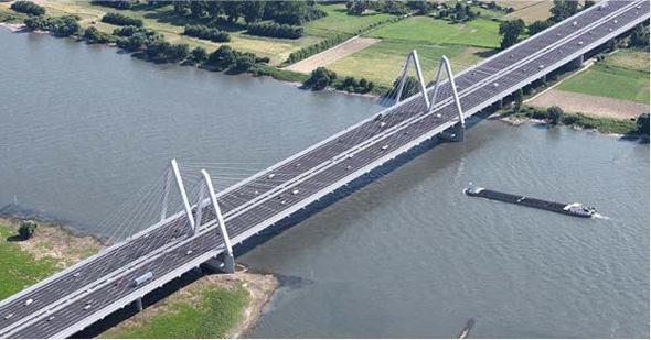 勒沃库森莱茵河大桥总承包方为德国PORR公司,本项目是位于LEVERKUSEN(勒沃库森)市,跨越莱茵河往返特里尔与多特蒙德之间,两座单向行驶的公路斜拉桥,业主为德国交通部。