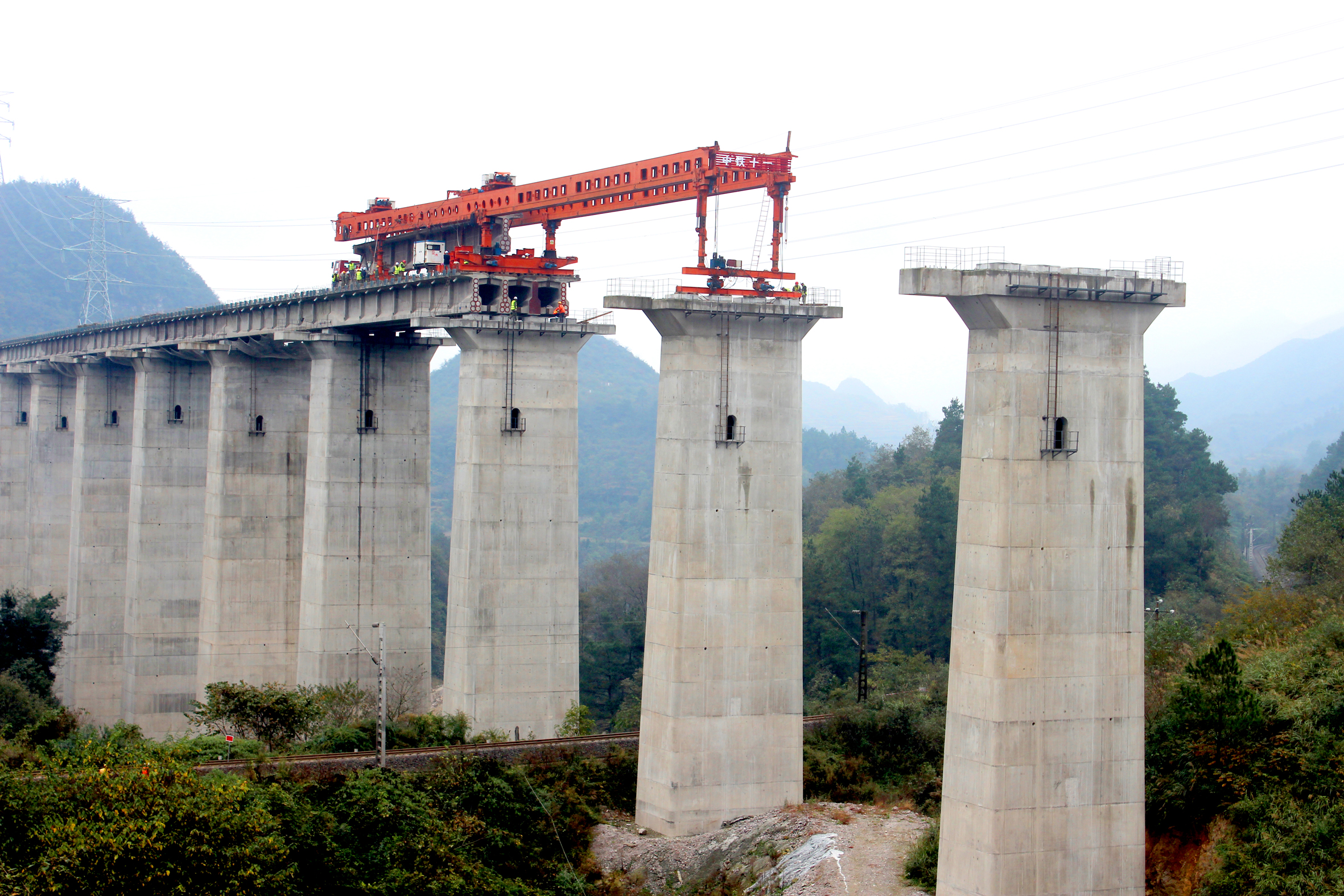 中铁十一局集团承建了渝贵铁路土建11标,内含息烽至蓬莱约40公里土建施工任务、桐梓北至蓬莱段铺架施工任务。建设过程中,工程人员不仅克服了坡度大、运输安全风险高等诸多困难,还取得了单个架桥机单月架梁252孔的高产纪录。