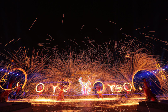 演员们以“火”为表演元素,以创新3D裸眼科技让现场活灵活现、栩栩如生,表达对来年的美好祝福和希望。伴随《火舞中华》的激扬情绪,领导嘉宾和文化名人及市民代表共同启幕华侨城·自贡灯会西安城墙亮灯仪式。只见西安永宁门城门吊桥开始缓缓落下,威武雄壮的金甲武士手持卢布和挑灯侍女鱼贯而出,大家合力启动了点亮装置,瞬间会场光影四射,澎湃激昂的音乐响彻天际,代表十二城的精美剪纸、中国风的气球灯缓缓升空,城墙万盏花灯由南门广场—月城—瓮城—城上被依次点亮,璀璨夺目。