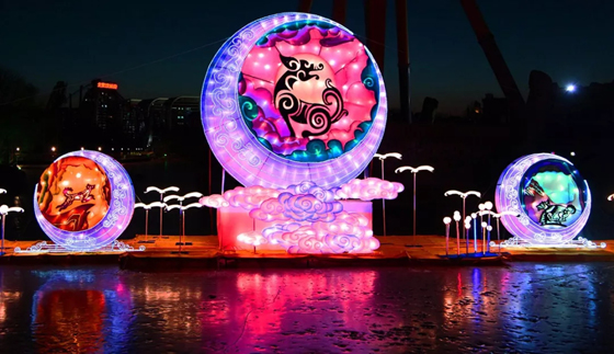 城墙之上,看万盏彩灯如繁星闪烁;千姿百态的彩灯盛景,构筑起梦幻新春奇境。 “鱼化龙”演绎惊艳动感,“鸟语花香”带来悦耳生动,“梦与飞翔”用巨大双翅与星云梭线营造迷幻梦境……